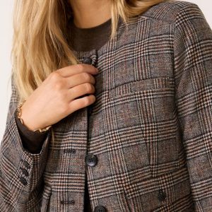 A preppy addition to your blazer collection, the Ellie Plaid Jacket by EVEREVE features a round collar, front button closures, patch pockets, and a cropped silhouette.