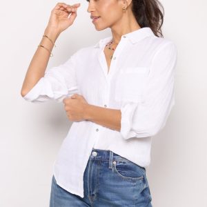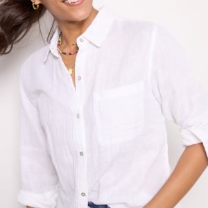 Relaxed yet refined, this breezy Rails button-down is crafted in cotton gauze fabric with a curved hem and left chest pocket. Wear it all season long tucked into cutoffs or open with a tank and trousers.
