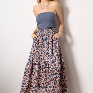 Refresh your summer wardrobe with this floral maxi skirt by EVEREVE. The Eloise skirt is crafted in flowy cotton fabric and features a tiered silhouette, elastic waistband, and side pockets.