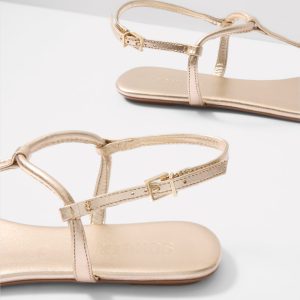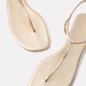 Complete any summer look with the Elsha flat sandal by Schutz. These leather thong sandals feature a T-strap design, adjustable buckle closure, and a metallic finish.