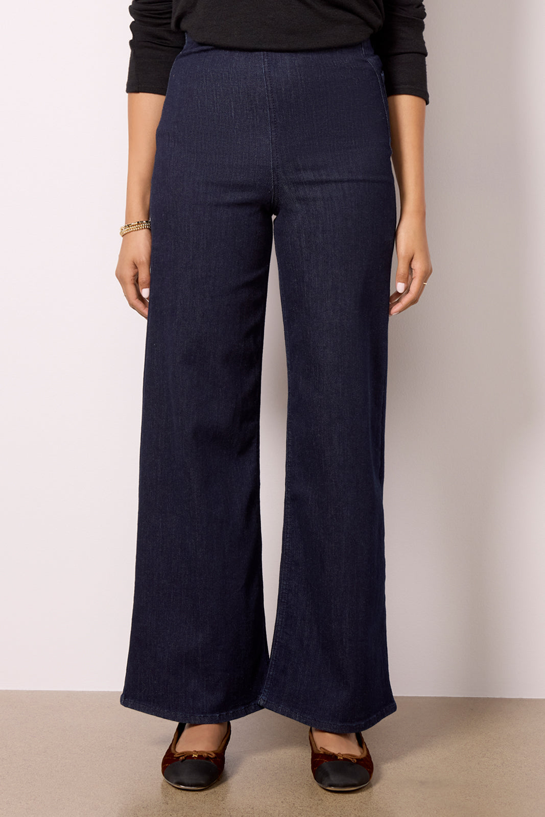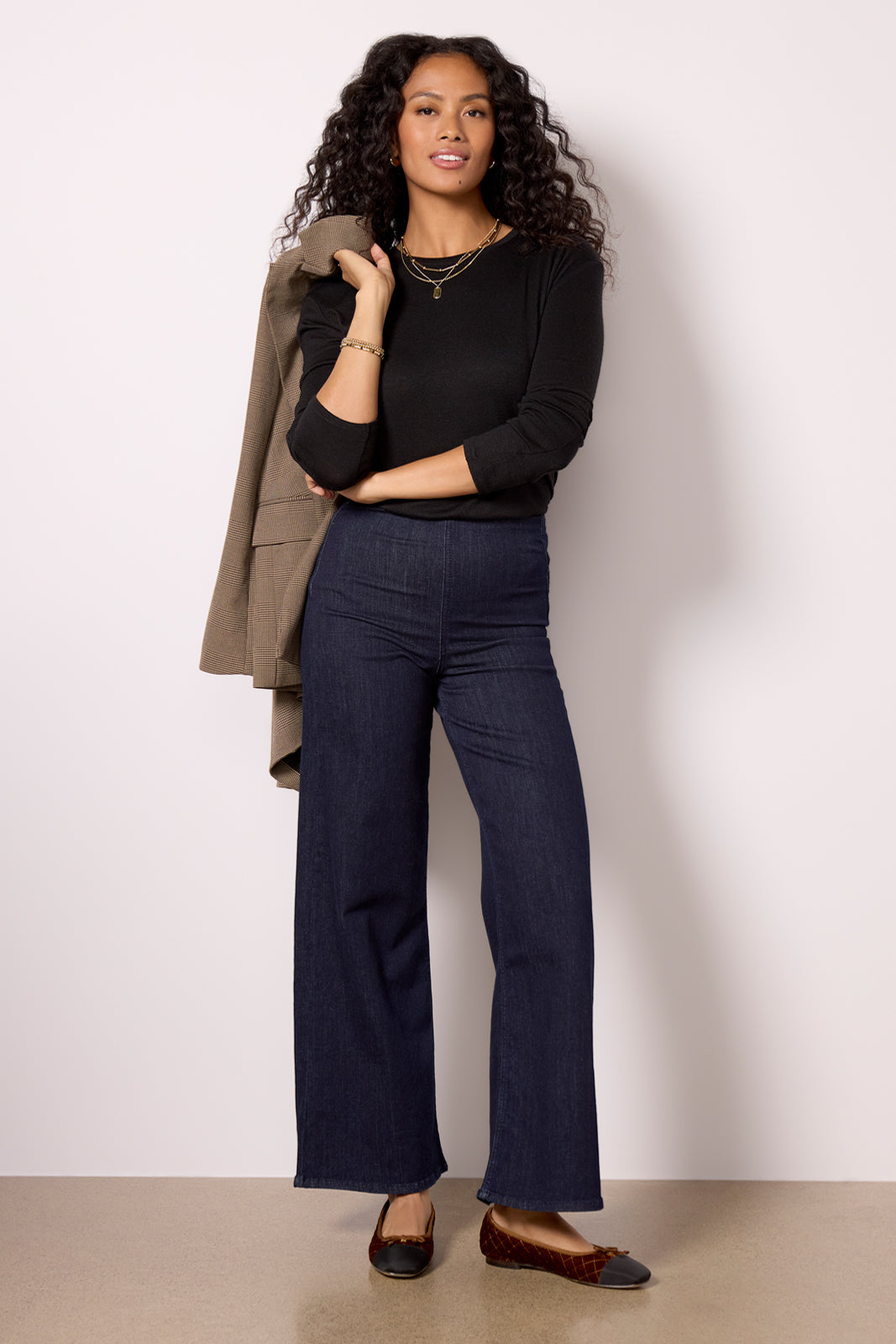 A polished addition to your denim collection, thesewide leg jeans by rag & bone feature a pull-on silhouette with a high-rise fit, back patch pockets, and clean hems. They’re crafted for office-to-evening comfort in their signature Epic stretch denim.