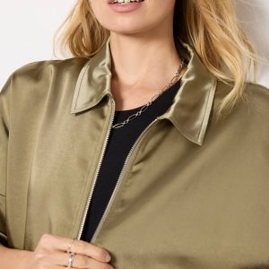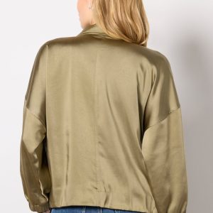 Layer your night-out looks with this chic satin bomber jacket by Melissa Nepton, featuring a front zipper closure, collared neckline, and dolman sleeves with elastic cuffs.
