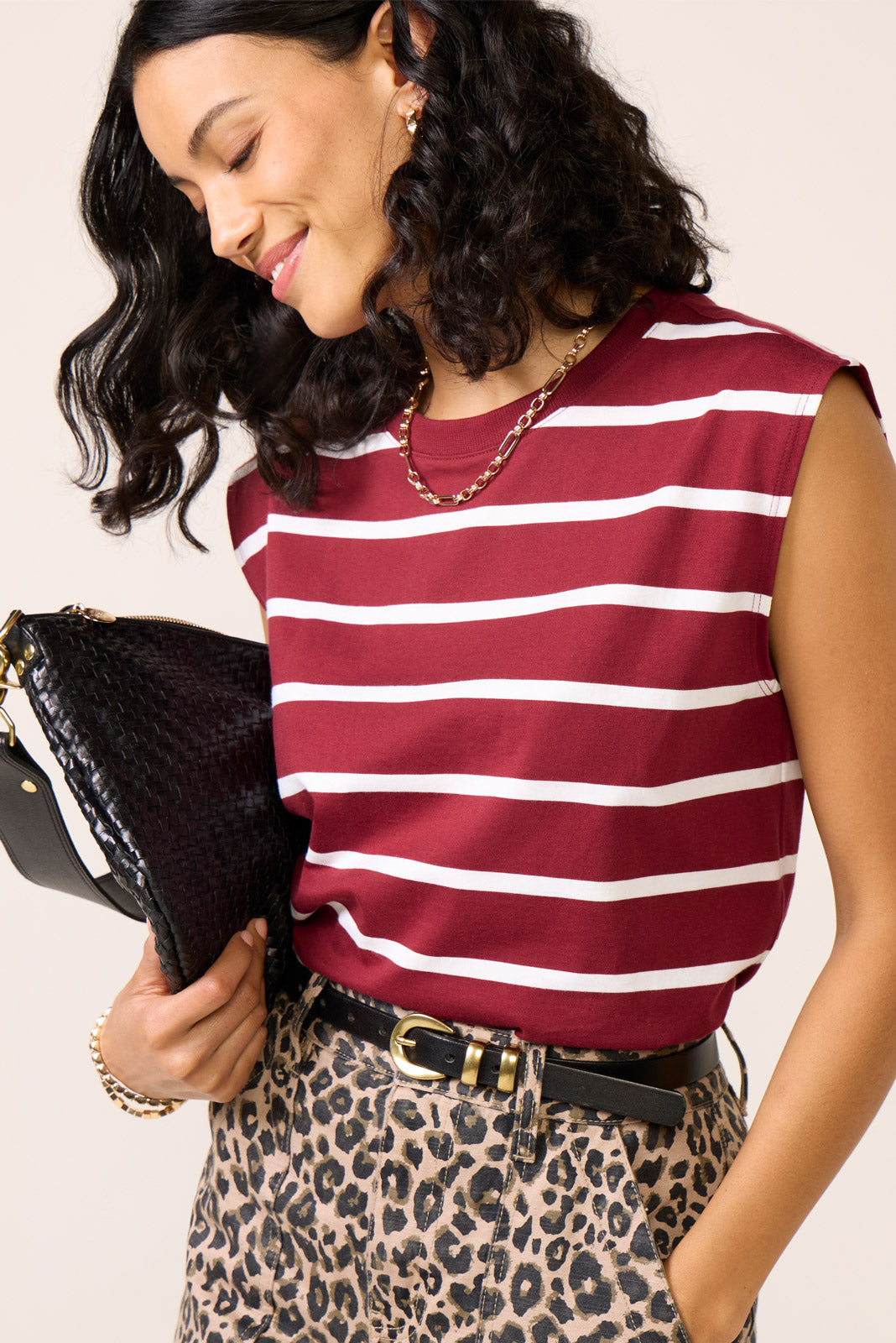 Finished in chic stripes, this EVEREVE muscle tank will be your new favorite staple, crafted from soft Pima cotton with a crew neckline and relaxed, cropped fit.