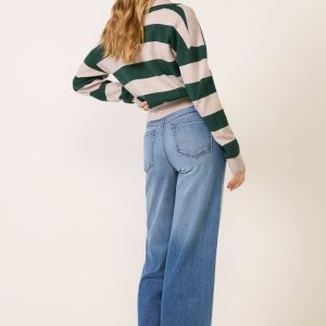 Cuffed hems with silver stud details define these stylish wide leg jeans by EVEREVE, featuring a high-rise silhouette, faded blue wash, and full-length inseam.