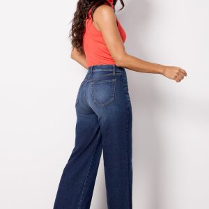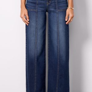 Vertical seam details and angled front pockets elevate these stylish wide leg jeans by EVEREVE, crafted in soft, comfort-stretch denim with a full-length inseam and dark blue wash.