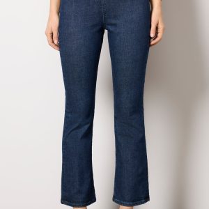 Designed with no hardware or pockets for a sleek pull-on version of the Farrah Boot Crop Jean by AG, these easy pants feature a mid-rise waist, clean dark blue wash, and a flattering subtle flared silhouette.