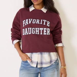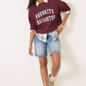Elevate your casual-cool look with this cropped sweatshirt by Favorite Daughter, crafted from a soft cotton blend with a crew neckline, dropped shoulders, and block lettering across the front.