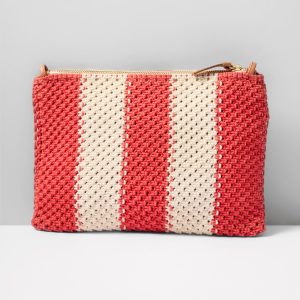 Carry your essentials in style with this gorgeous clutch by Clare V., crafted incotton crochet fabric with a top zipper closure and chambray lining. The leather tabs let you attach your favorite strap to wear as a shoulder bag or crossbody.