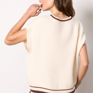 A varsity-inspired design defines this stylish sweater vest by Z Supply, featuring a relaxed silhouette with dropped shoulders, ribbed trim, and striped detailing at the collar and hem.