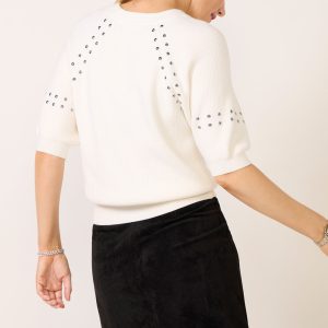 The perfecttransitional piece for your wardrobe, the Flynn Sweater Tee by EVEREVE features a crew neckline, short puff sleeves, stud details, and a banded bottom to create the perfect relaxed silhouette.