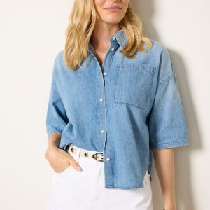 A perfect addition to your summer denim collection, the Frances Button Up from Citizens of Humanity features a point collar, front button closures, a left chest pocket, and a cropped silhouette.