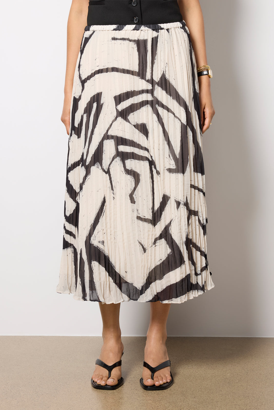 An easy addition to your summer work wardrobe, the Gigi Pleated Skirt by Cloth & Stone features a lined midi silhouette, a comfortable elastic waistband, and finished in a geo print design.