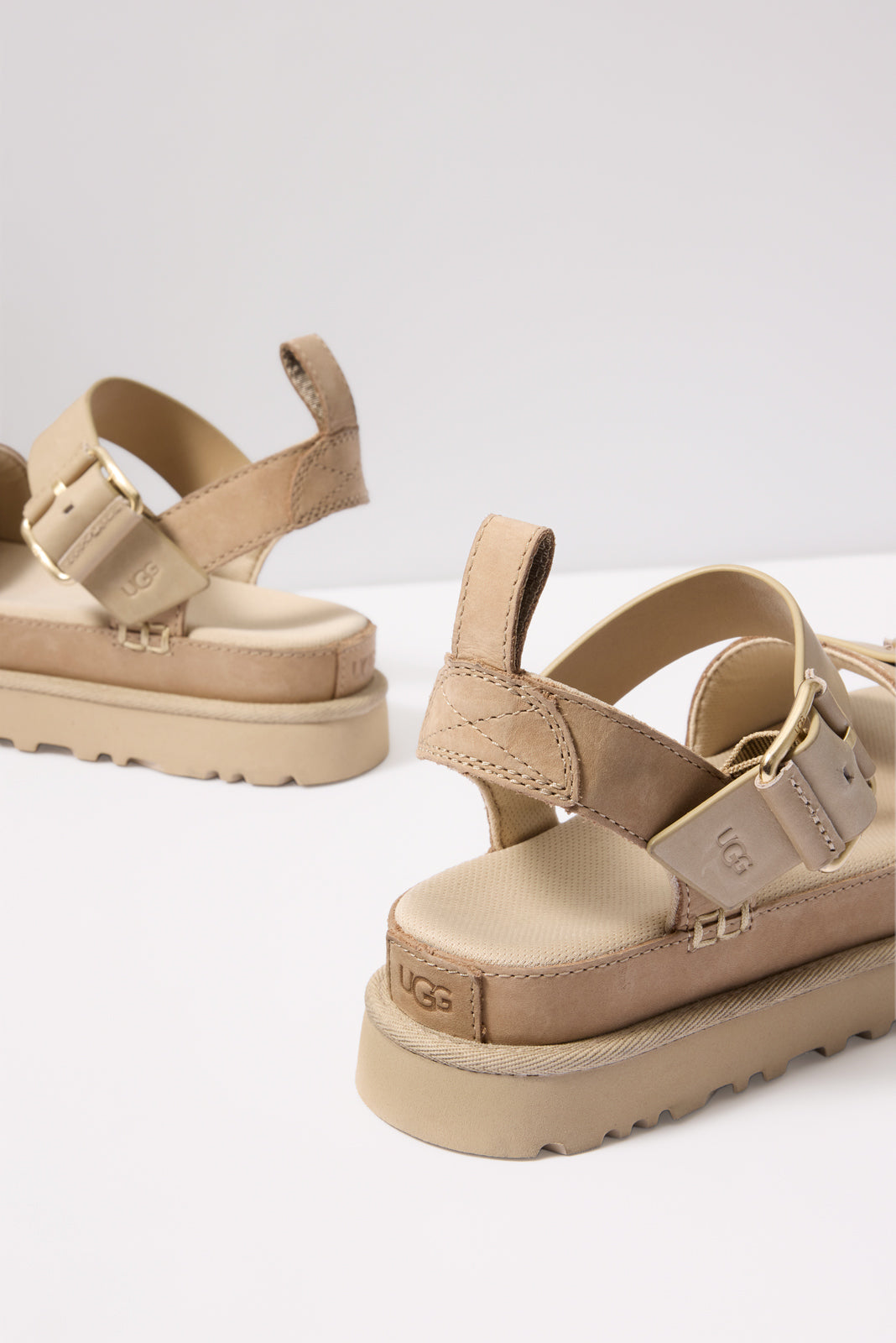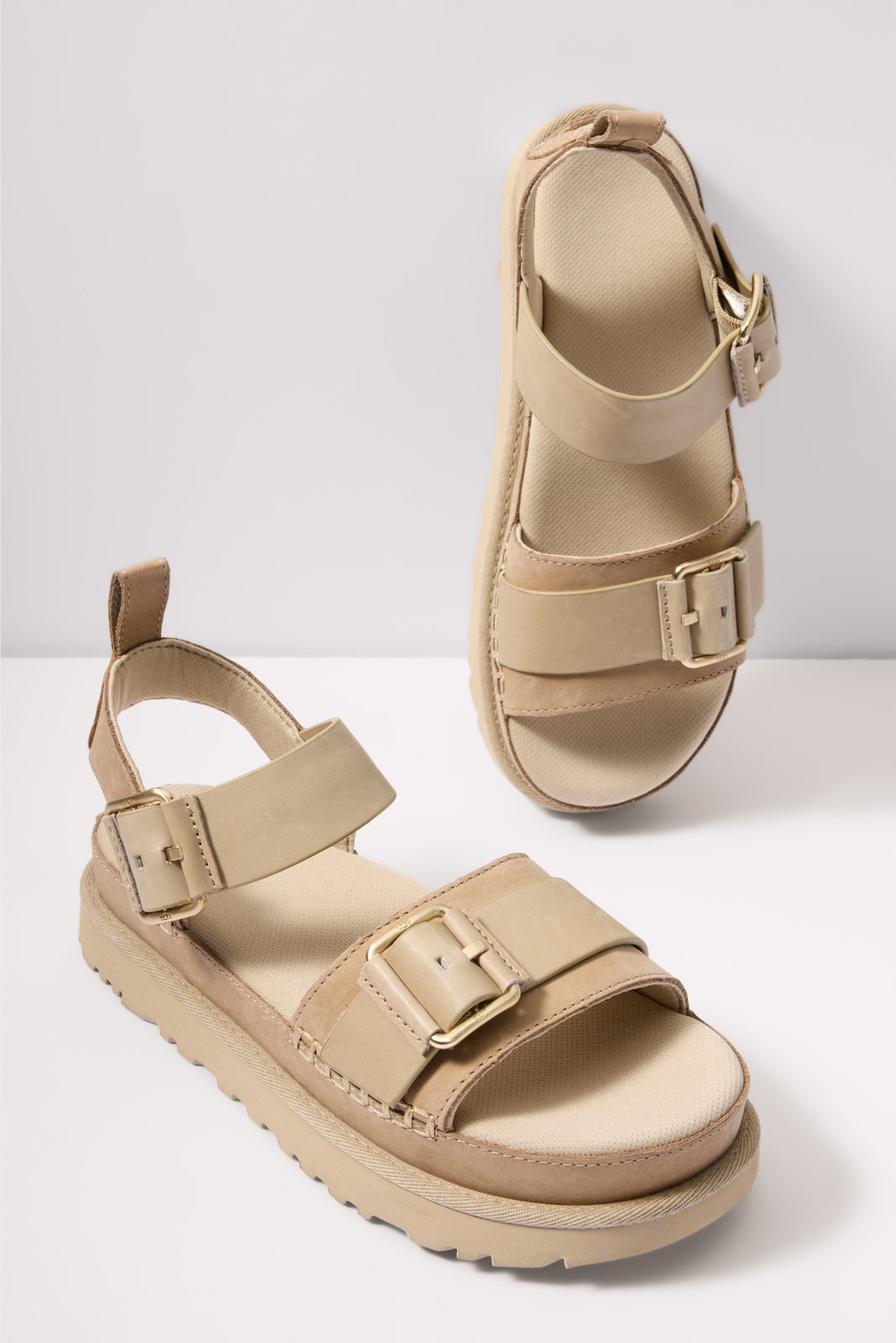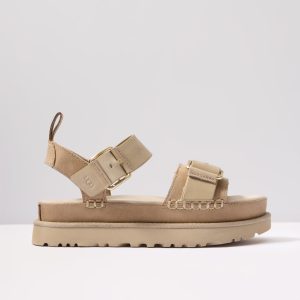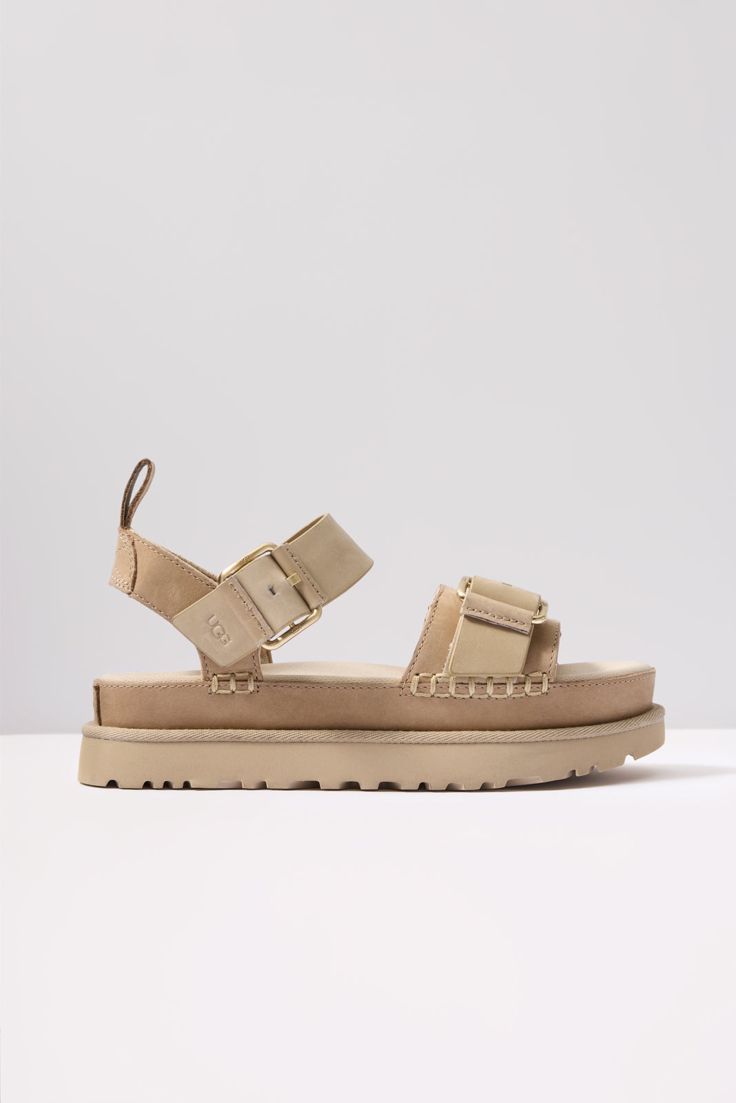 The Goldenstar Villa by UGG® will instantly elevate any warm-weather look.Finished with soft Nubuck and genuine leather straps, these stylish platform sandals feature buckle details, whipstitch binding, and a contoured footbed for all-day comfort.