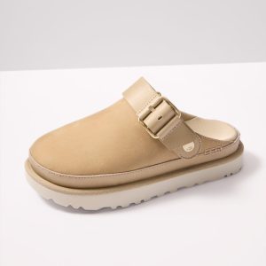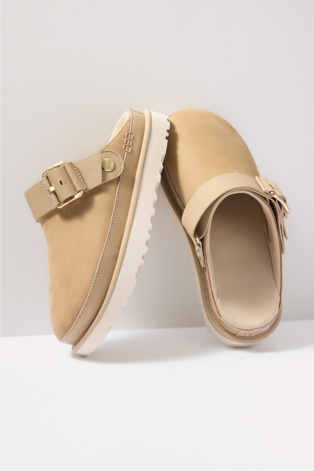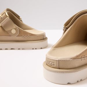 The Goldenstar Villa Clog byUGG® will be your new go-to for everyday wear, featuringa Nubuck upper, lightweight platform sole, and round toe. The adjustable buckle strapswivels to wear behind the heel or stacked on top for a slip-on option.
