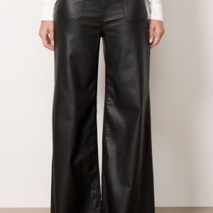 A full-length wide leg and flattering high-rise fit define the Goldie pants by Kut From The Kloth, featuring raw hems, patch pockets, and sleek coated denim fabric for a leather-like look.