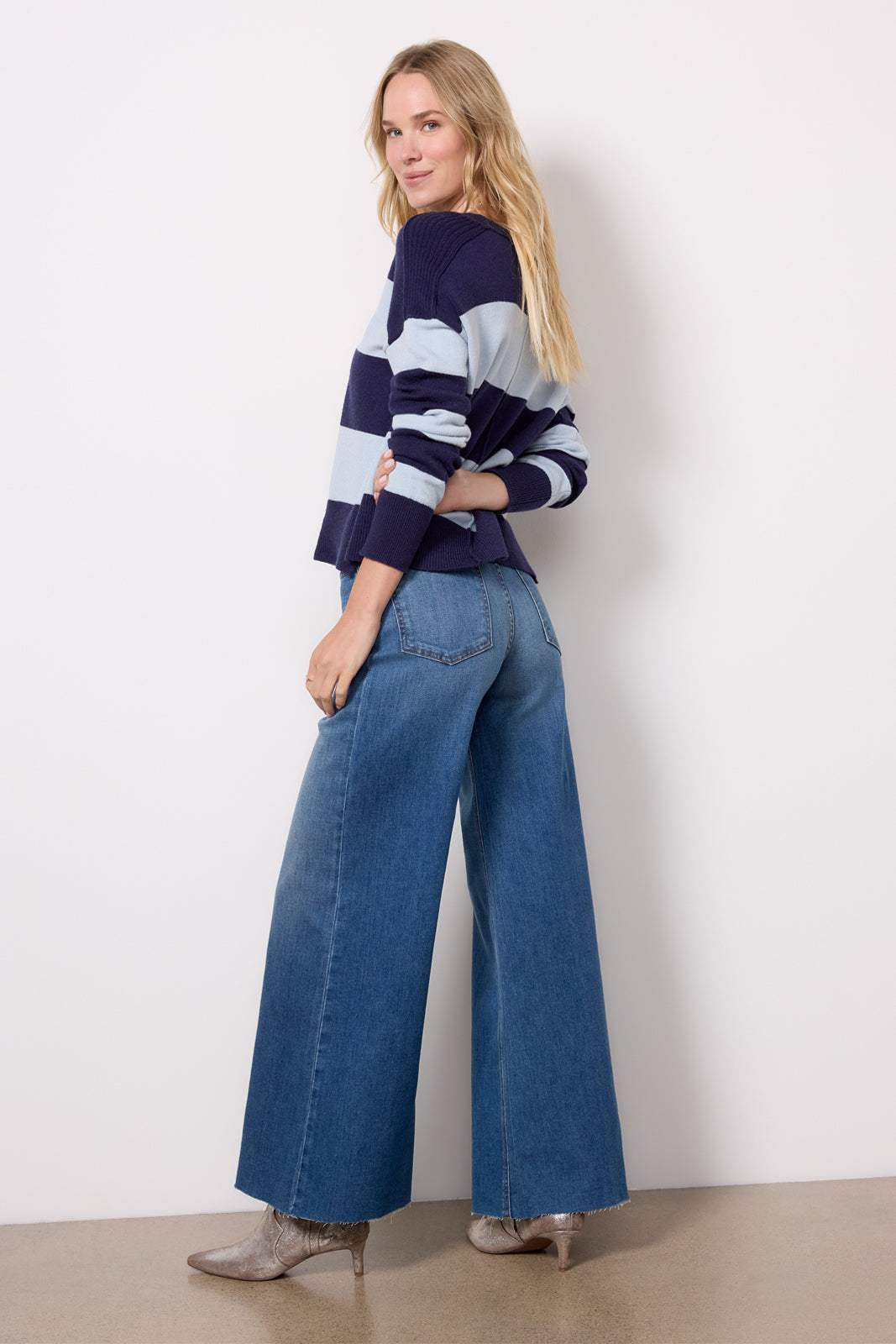 A flared wide leg defines these fun and flattering jeans by Kut From The Kloth, featuring a high-rise waist, raw hems, and softstretch denim fabric.