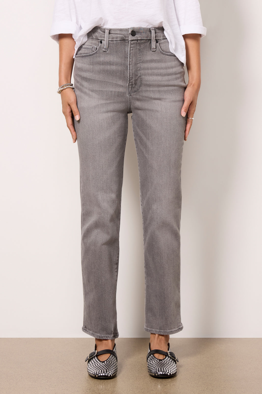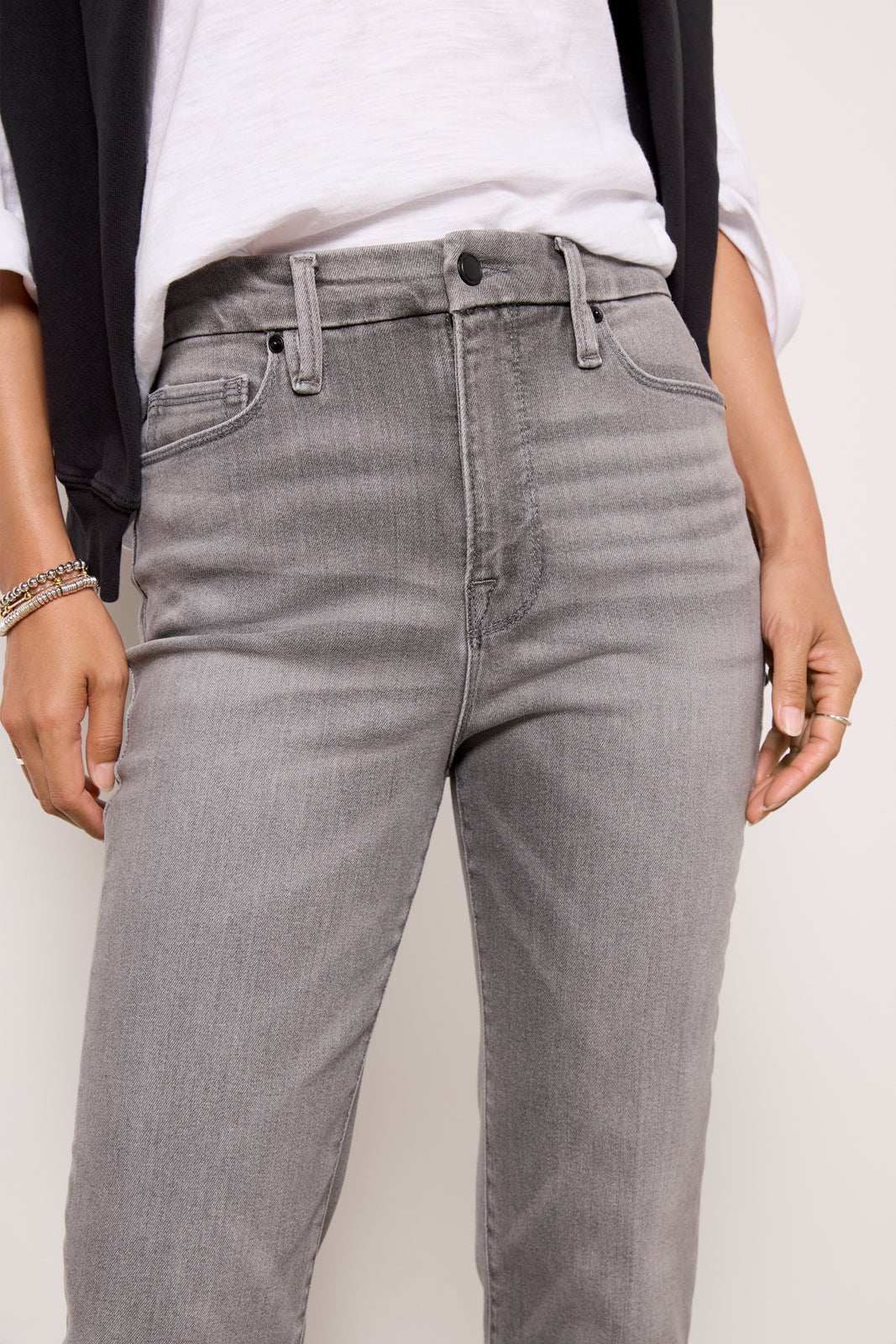 Perfect for day-to-night wear, these straight leg jeans by Good American feature a high-rise waist, ankle-length hems, and soft stretch denim that smooths and sculpts for an always-flattering fit.