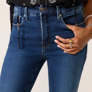 Finished in a dark blue wash, these bootcut jeans by Good American feature a flattering mid-rise silhouette with ankle-length hems. The soft comfort-stretch denim fabric holds its shape, wear after wear.
