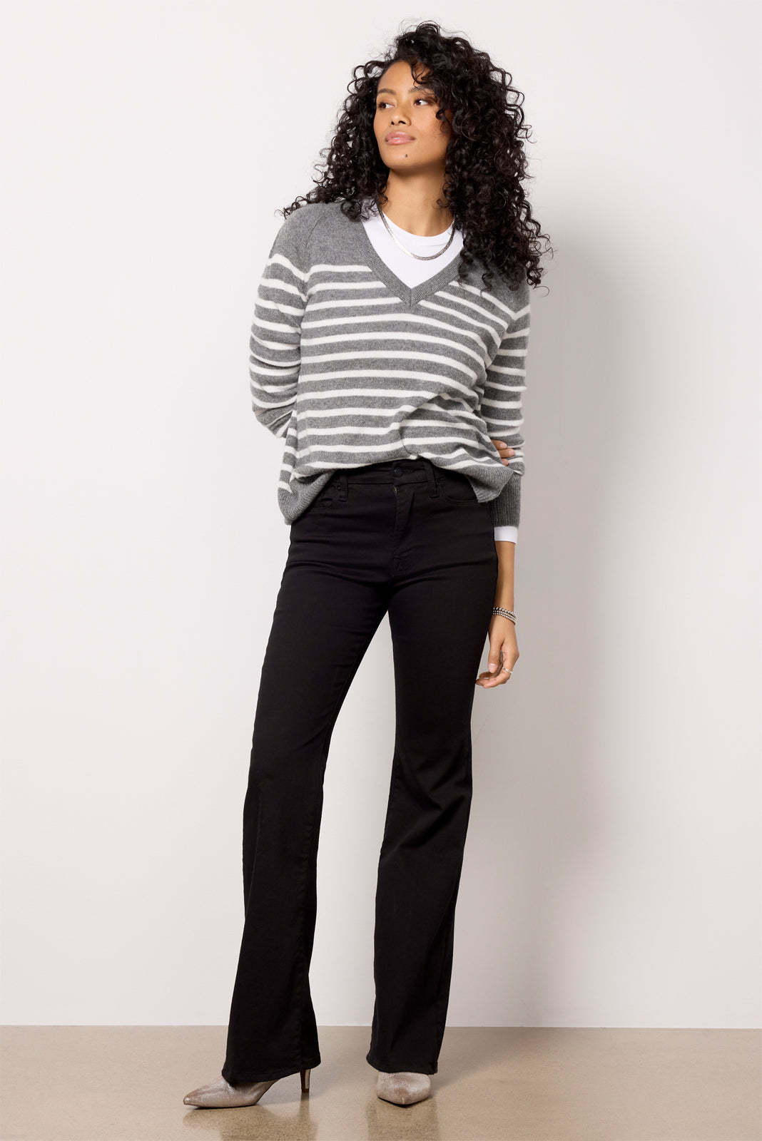 Flared and oh-so-flattering, you’ll be wearing these Good American jeans again and again. This high-rise silhouette features a black wash, darted back pockets, and a full-length flare leg that pairs perfectly withall your favorite looks.