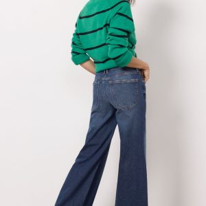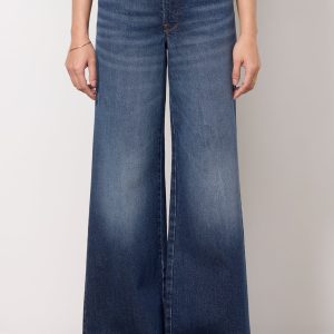 Made to fit and flatter, these Good American jeans are designed with a shorter inseam and rise for petite body types. The Good Palazzo Petite jean features awide leg silhouette, full-length hems, and adark blue wash that’s perfect for day-to-night wear.