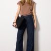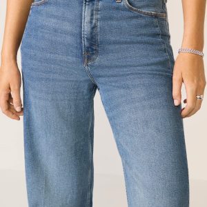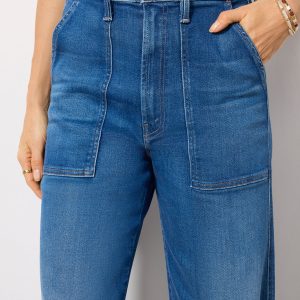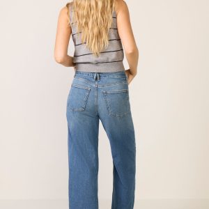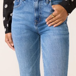 Finished in a faded blue wash, the Good Skate wide leg jean by Good American is crafted from comfortable stretch denim and features a high-rise fit, side seam detailing, and raw hems cropped at the ankle.