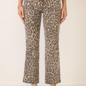 Finished in a bold leopard print, these stylish kick flare jeans by Good American feature a flattering high-rise silhouette, ankle-length inseam, and clean hems.