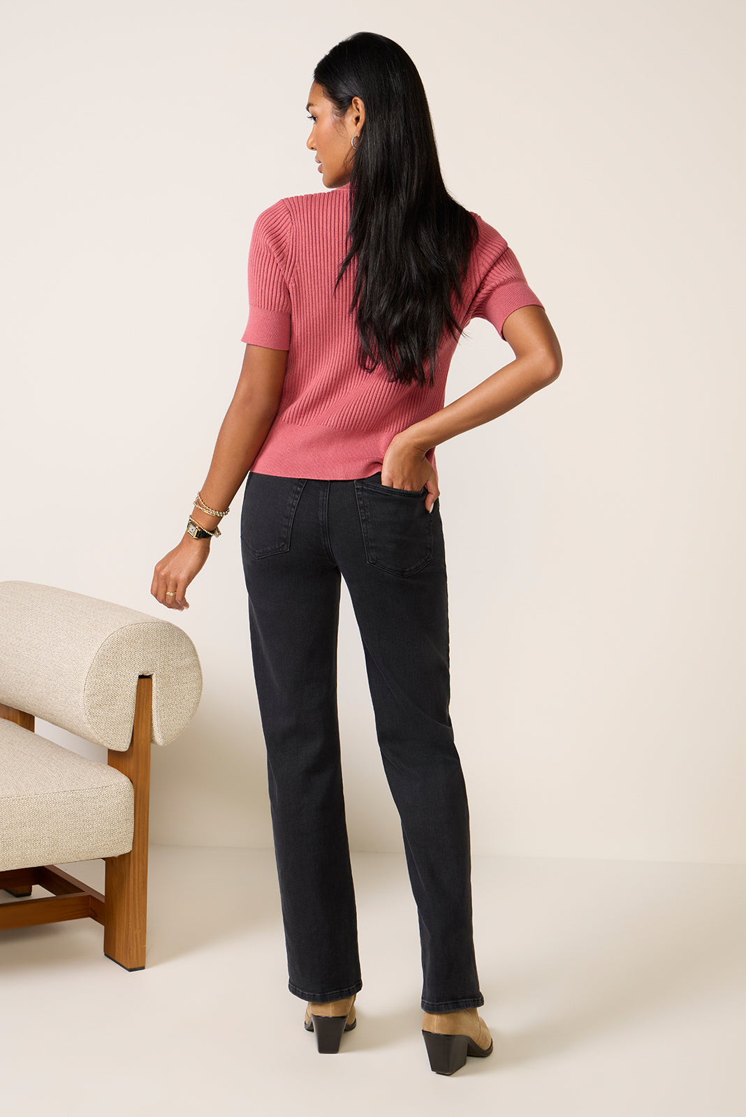 A versatile addition to your denim collection, these straight leg jeans by Good American will be your new go-to. The Good True Straight Jean is crafted in comfortable stretch denim and features a high-rise fit,black wash, and full-length clean hems.