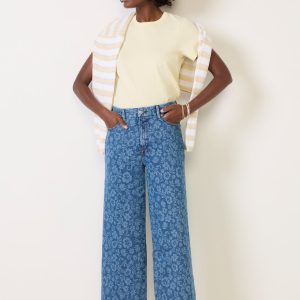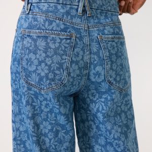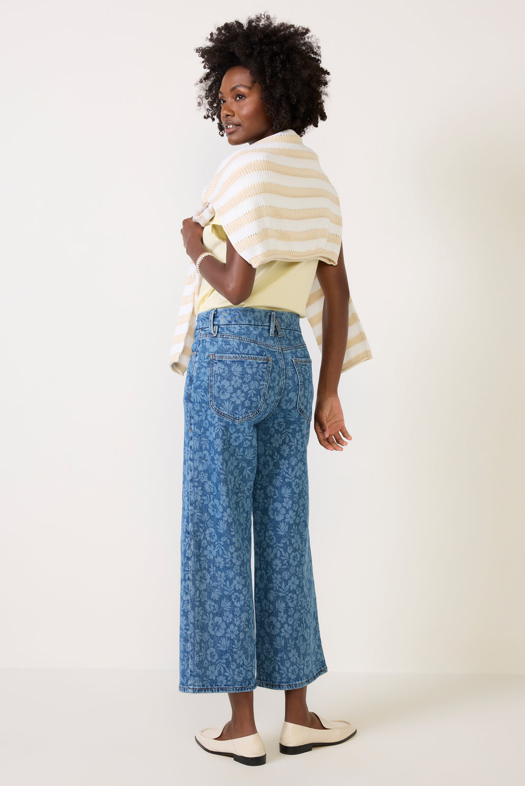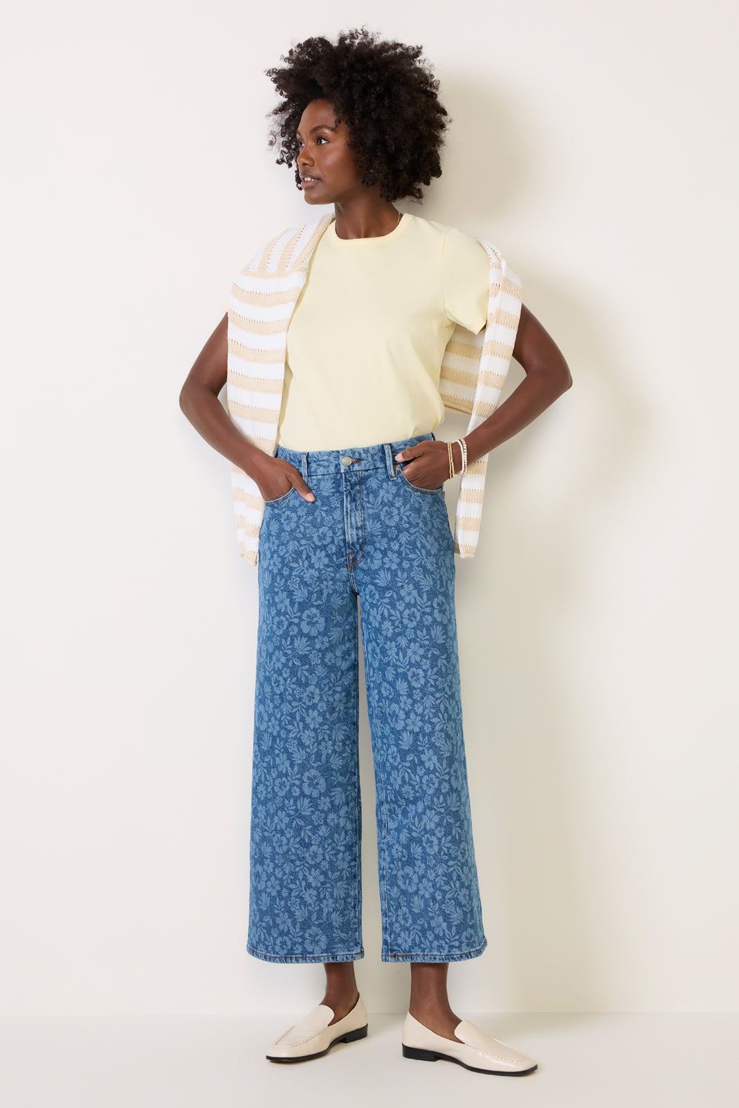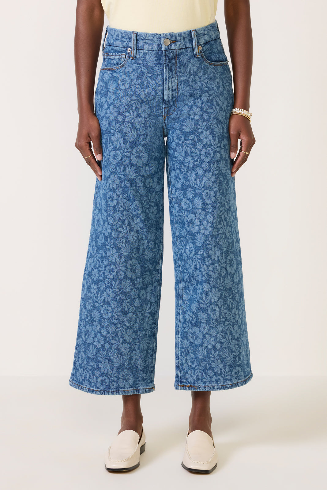 Atonal floral design updates these fun and flattering wide leg jeans by Good American. Cropped at the ankle, the Good Waist Palazzo jean features a gap-proof waistband, clean hems, and soft stretch denim that moves with you from day to night.