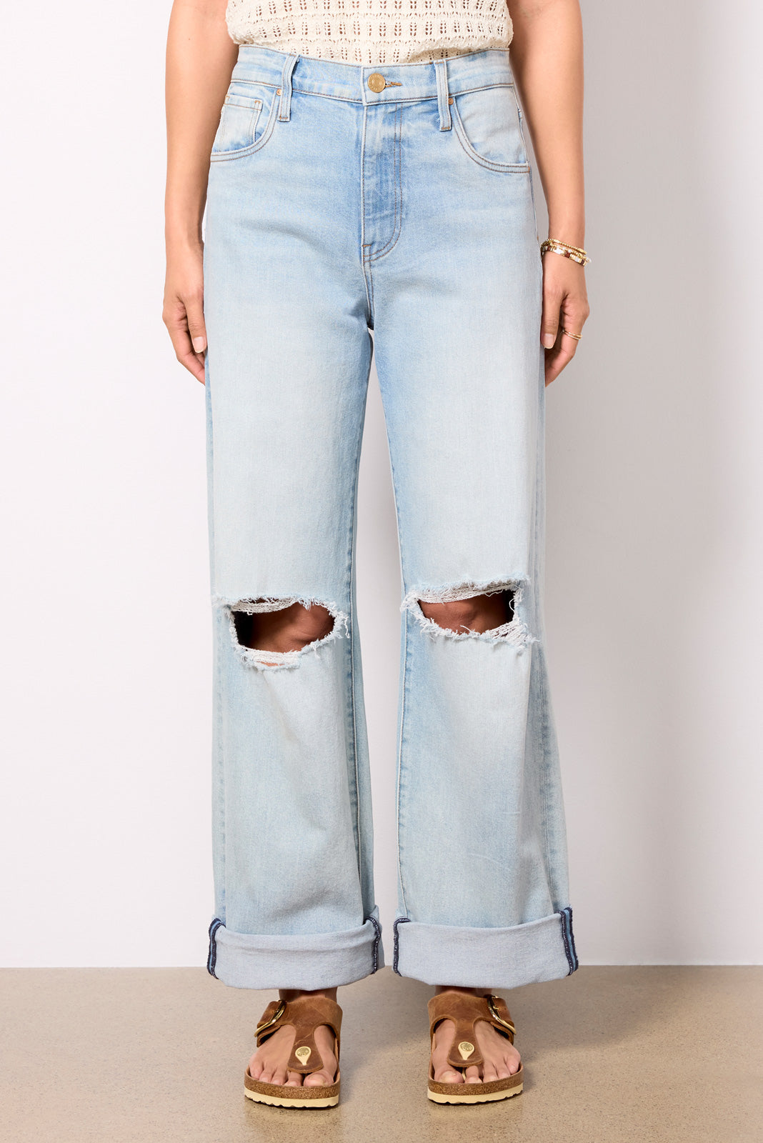Add to your cuff denim collection with the Gwen Cuff Jean by Kut from the Kloth, featuring a high-rise fit, full-length inseam, and rips on the knees for a lived-in feel.