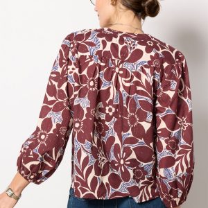 Add a pop of print to your wardrobe with theHaddon Top by Velvet. This button-front blouse is crafted in lightweight cotton cambric with a round collar, smocked front yoke, and three-quarter puff sleeves.