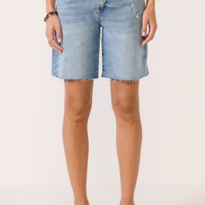 Round out your warm-weather wardrobe with the Hailey jean shorts byKUT From The Kloth. Finished with a longer 8″ inseam, theseversatile denim shorts feature arelaxed fit, raw hems, anddistressed details for a perfectly lived-in feel.