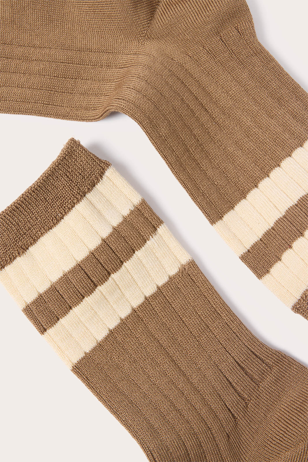 Sporty varsity stripes top these comfy quarter-crew socks by Le Bon Shoppe, crafted in a soft cotton blend with a ribbed design.