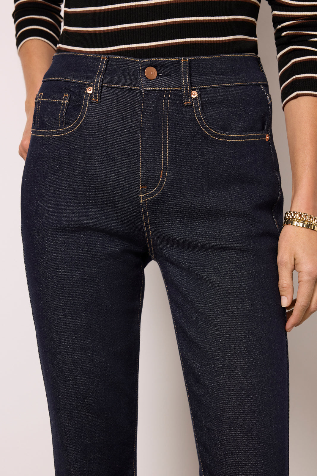 Flared and flattering, these EVEREVE jeans are a chic addition to your denim collection, featuring a high-rise waist, full-length hems, and dark rinse wash for day-to-night wear.