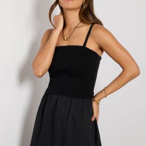 The Holly midi dress by EVEREVE is a chic pick for any summer occasion. Designed with removable straps, this stylish dress features a fitted sweater knit bodice and a flowy cotton skirt with side pockets.