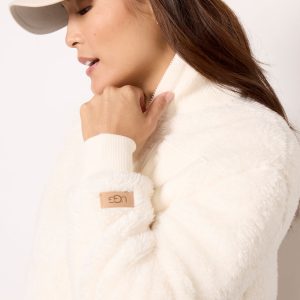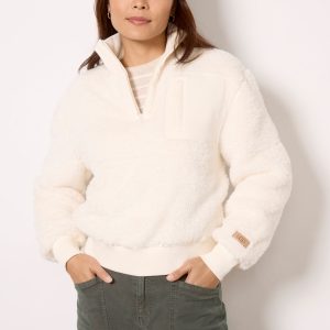 Stay comfy-cozy in the UGG® Janeann Half Zip. Finished in plush fleece, this soft pullover features a contrasting chest pocket and ribbed trim at the hem and cuffs.