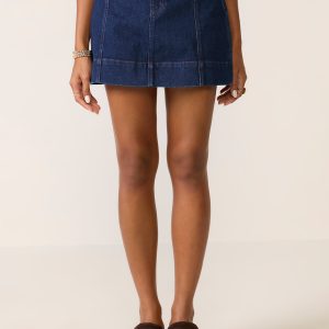 Crafted in a comfortable stretch cotton, the Janelledenim skirt by Paige features a mini silhouette, seam detailing, and patch pockets with gold buttons.