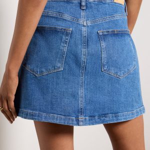 Perfectly on-trend, the Jannellemini jean skirt by Paige features stretch cotton denim fabric, front seam details, and two welt pockets with gold buttons.