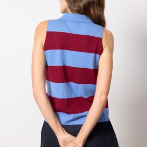 Add a touch of sporty style to your wardrobe with this striped rugby sweater tank by EVEREVE, featuring a collared neckline, covered half button placket, and slightly cropped fit.