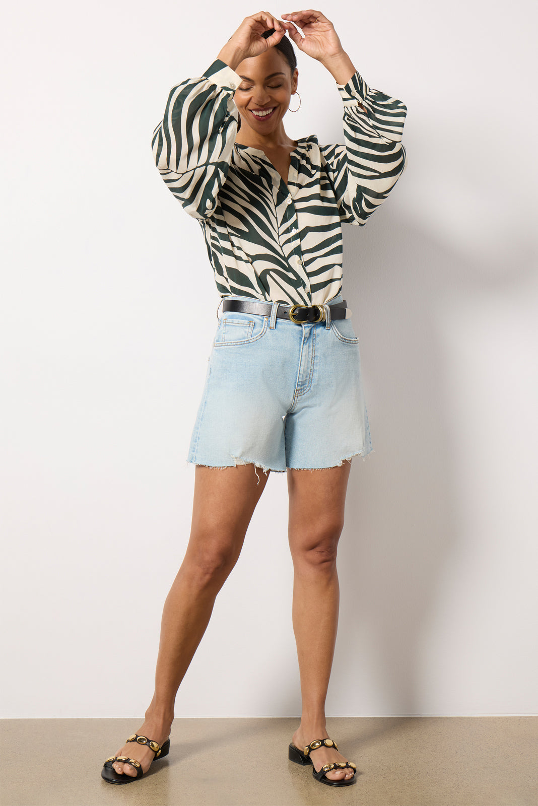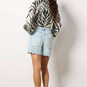Finished in light-wash denim, the Jenny jean short by KUT From The Kloth is perfect for your warm-weather rotation, featuring a high-rise fit, 5 1/2″ inseam, and destructed hems for a lived-in feel.