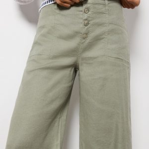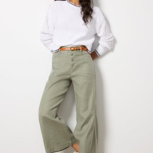 Add effortless style to your wardrobe with the Joellewide leg pant by EVEREVE.Perfect for dressing up or down, thesehigh-rise pants are crafted in comfortable stretch linen fabric with an exposed button fly, patch pockets, and clean hems cropped at the ankle.