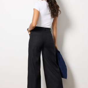 Add effortless style to your wardrobe with the Joellewide leg pant by EVEREVE.Perfect for dressing up or down, thesehigh-rise pants are crafted in comfortable stretch linen fabric with an exposed button fly, patch pockets, and clean hems cropped at the ankle.