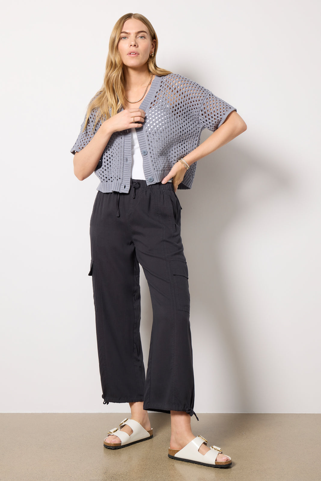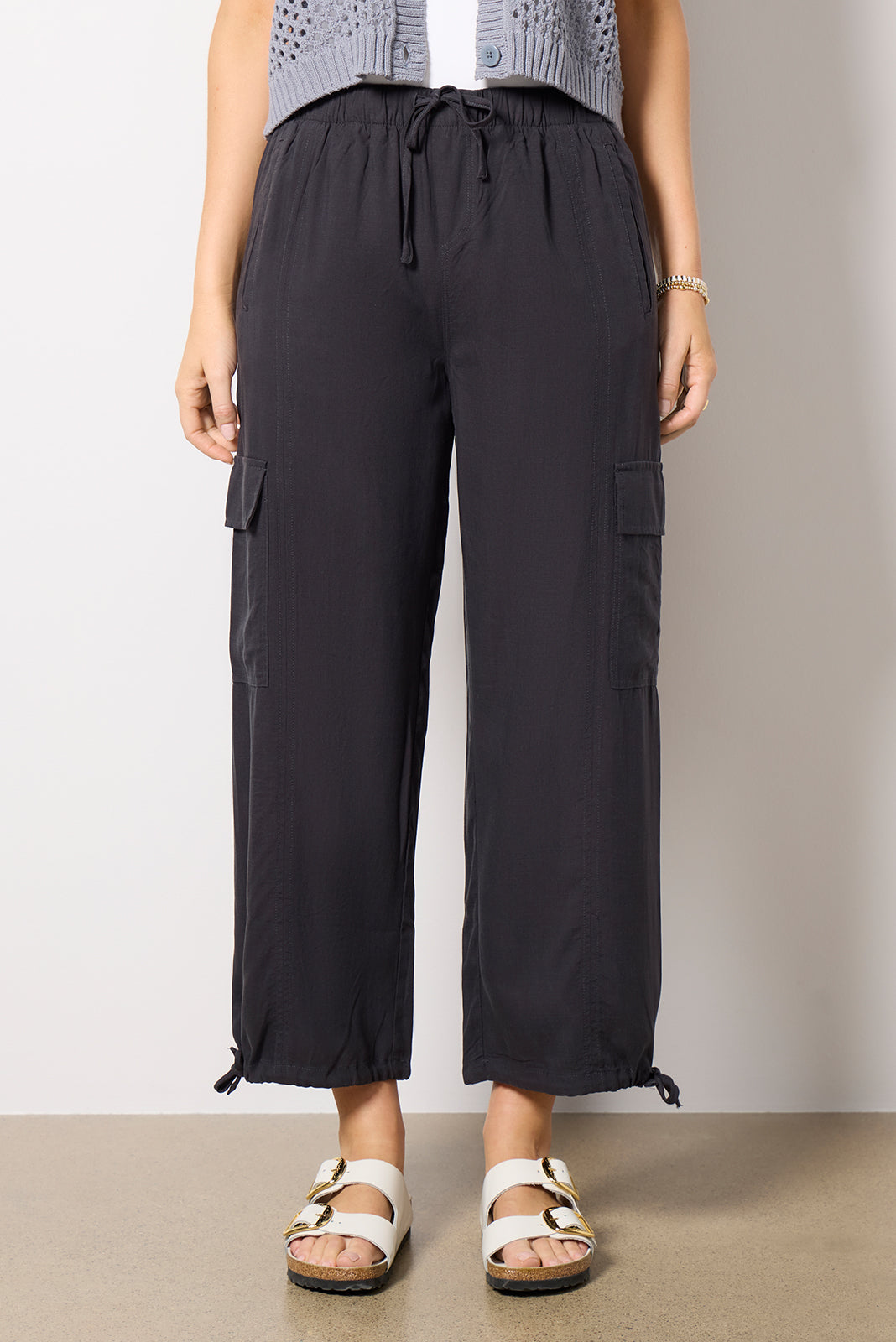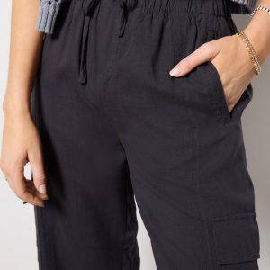 Crafted in a lightweight lyocell, the Kaia Cargo Pant will be your new go-to, featuring a drawstring waistband, a tapered leg with adjustable hems,side pockets, and cargo pockets. Pair with your favorite graphic tee and sandals for an easy and comfortable look.