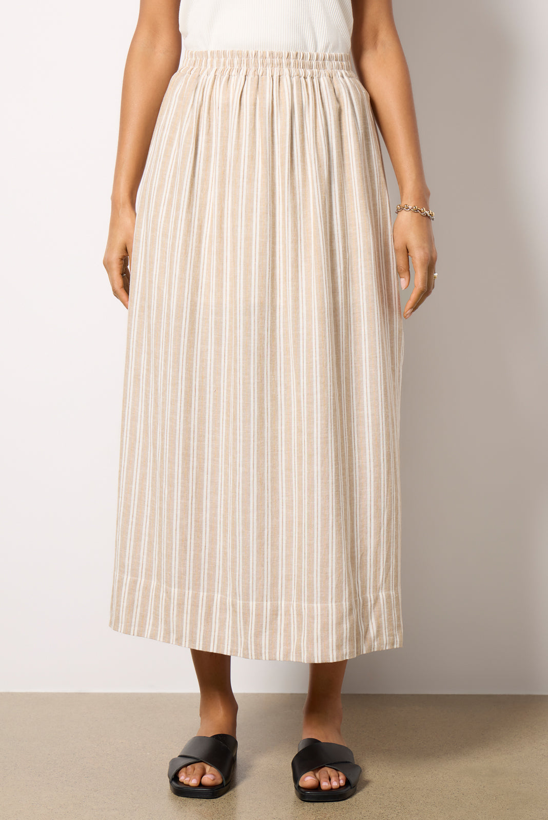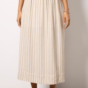 An effortless summer essential, the Kassidy striped midi skirt by Z Supply is crafted from linen-blend fabric and features a semi-lined silhouette with an elastic waistband, side pockets, and breezy side slits. Make it a two-piece set with the matching Callie V Neck Top.