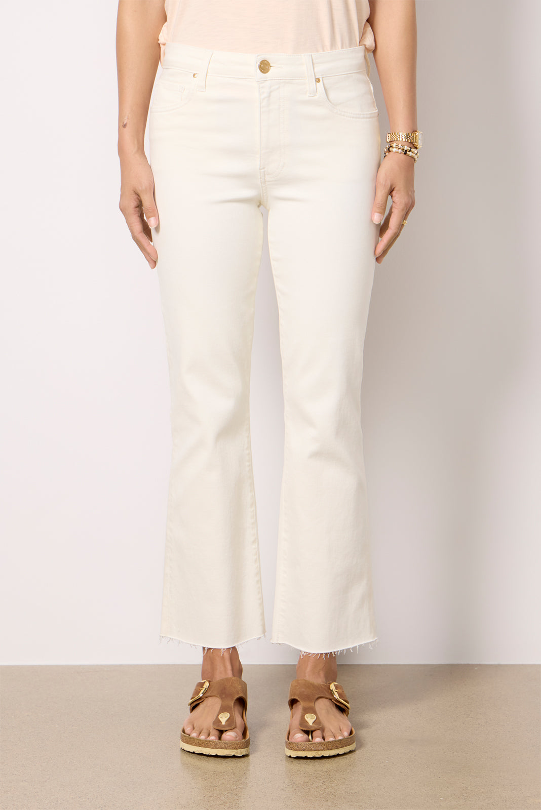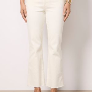 A flattering flared leg defines these wear-everywhere jeans by Kut From The Kloth. Finished in an ecru wash, the Kelsey features a mid-rise fit, ankle-length raw hems, and soft stretch denim that will move with you from day to night.