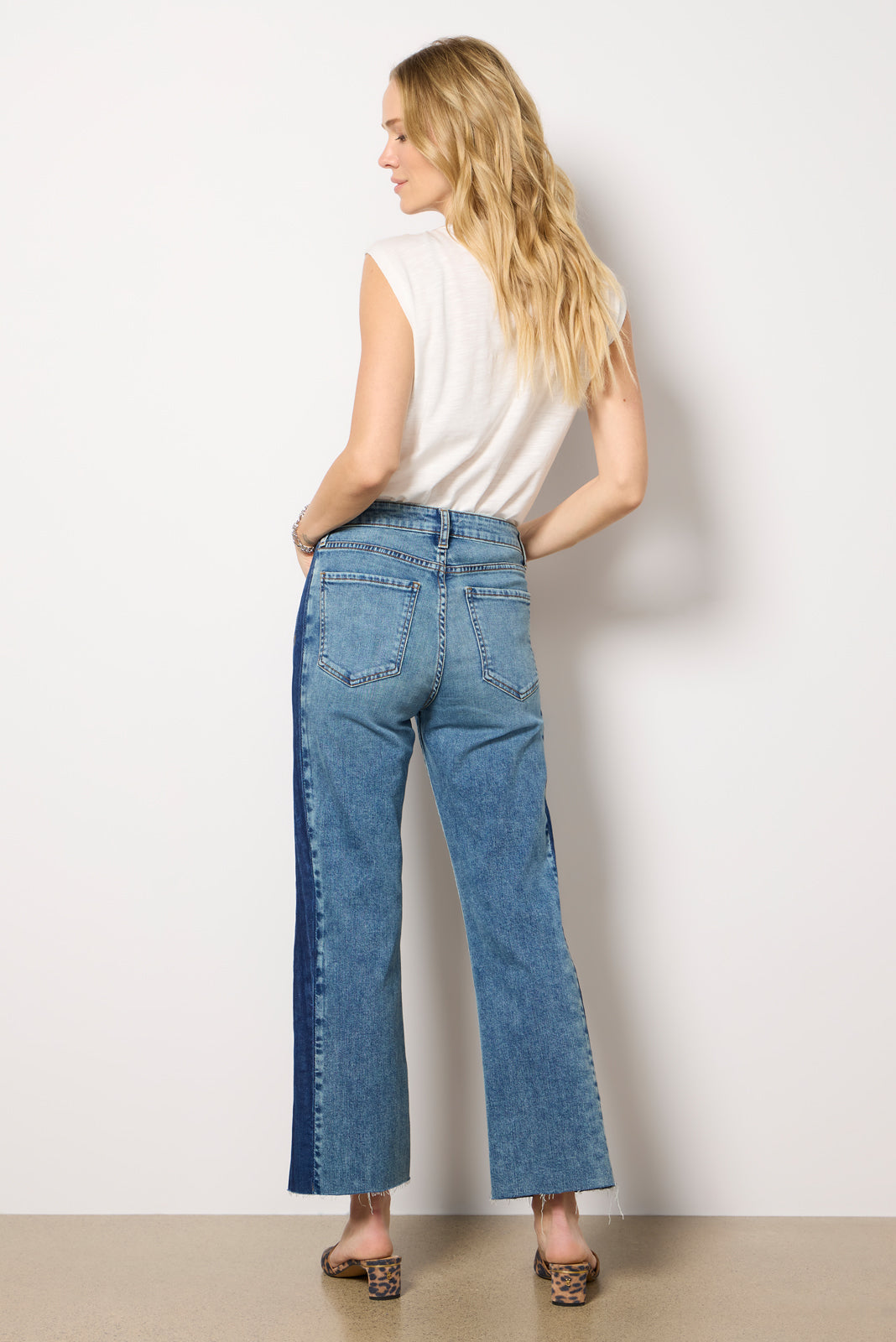 Designed with a contrasting dark wash along the side seams, the Kelsey flare jean by KUT From The Kloth is perfect for day-to-night wear, crafted in comfortable stretch denim with ankle-length raw hems.