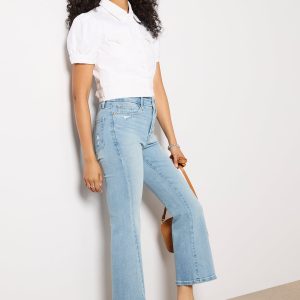 A fun and feminine take on your classic denim jacket, the Kendra Jacket by Paige is finished in a bright white wash and features a cropped silhouette with a front button closure, wide waistband, and short puff sleeves. Layer with any look from cargo pants towide leg jeans.