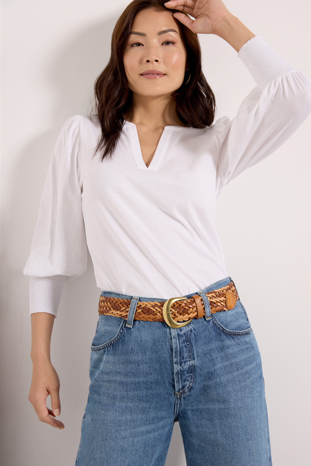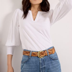 A must-have for your favorite denim, dresses, and skirts, the Kerrigan belt by EVEREVE is crafted in soft leather and features a gold-tone buckle and a woven design that lets you adjust to the perfect fit.