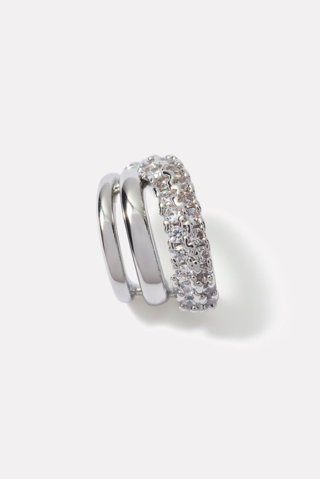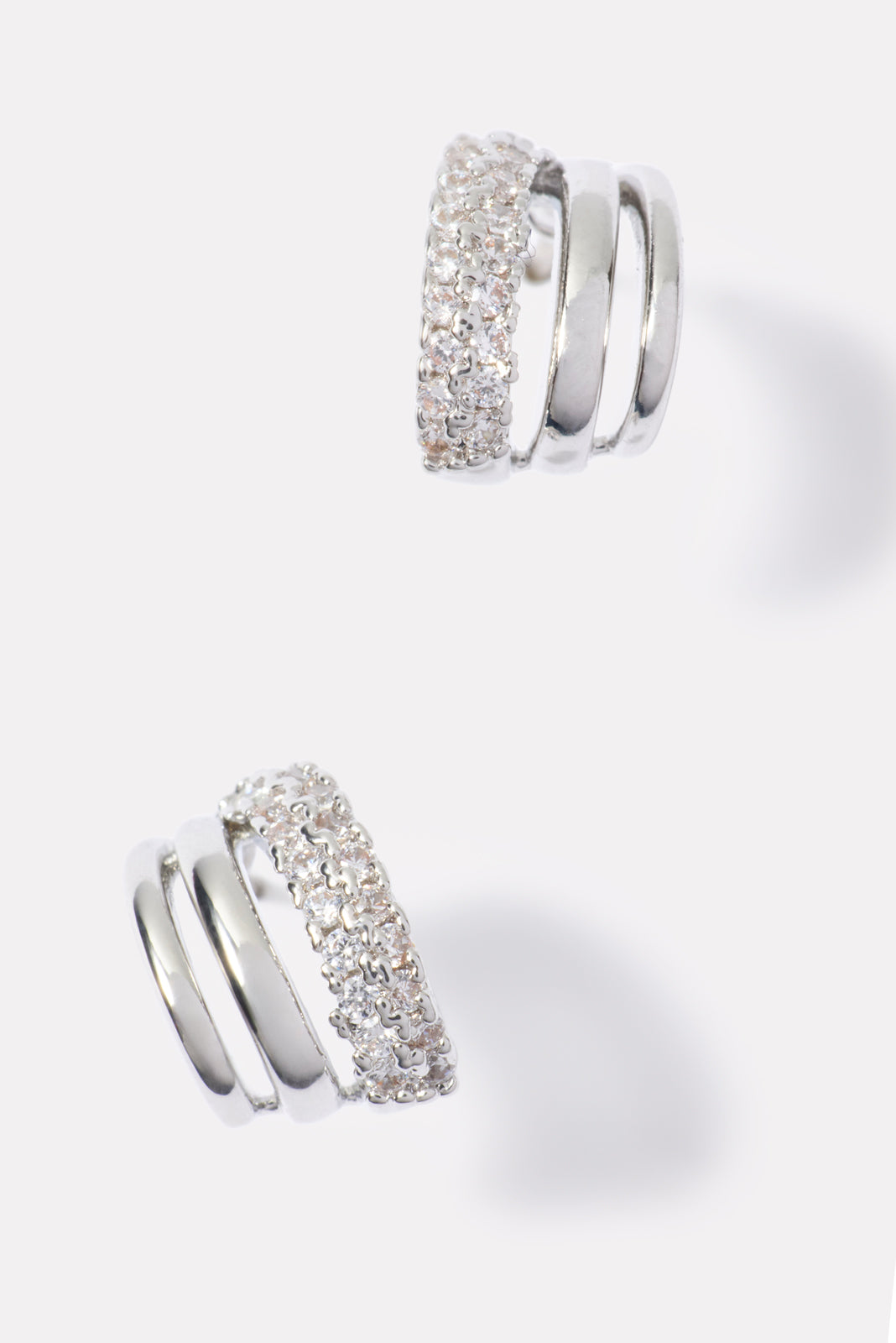 Give your look a subtle hint of sparkle with these huggie earrings by Luv AJ, featuring a triple hoop design andsilver-tonefinish.