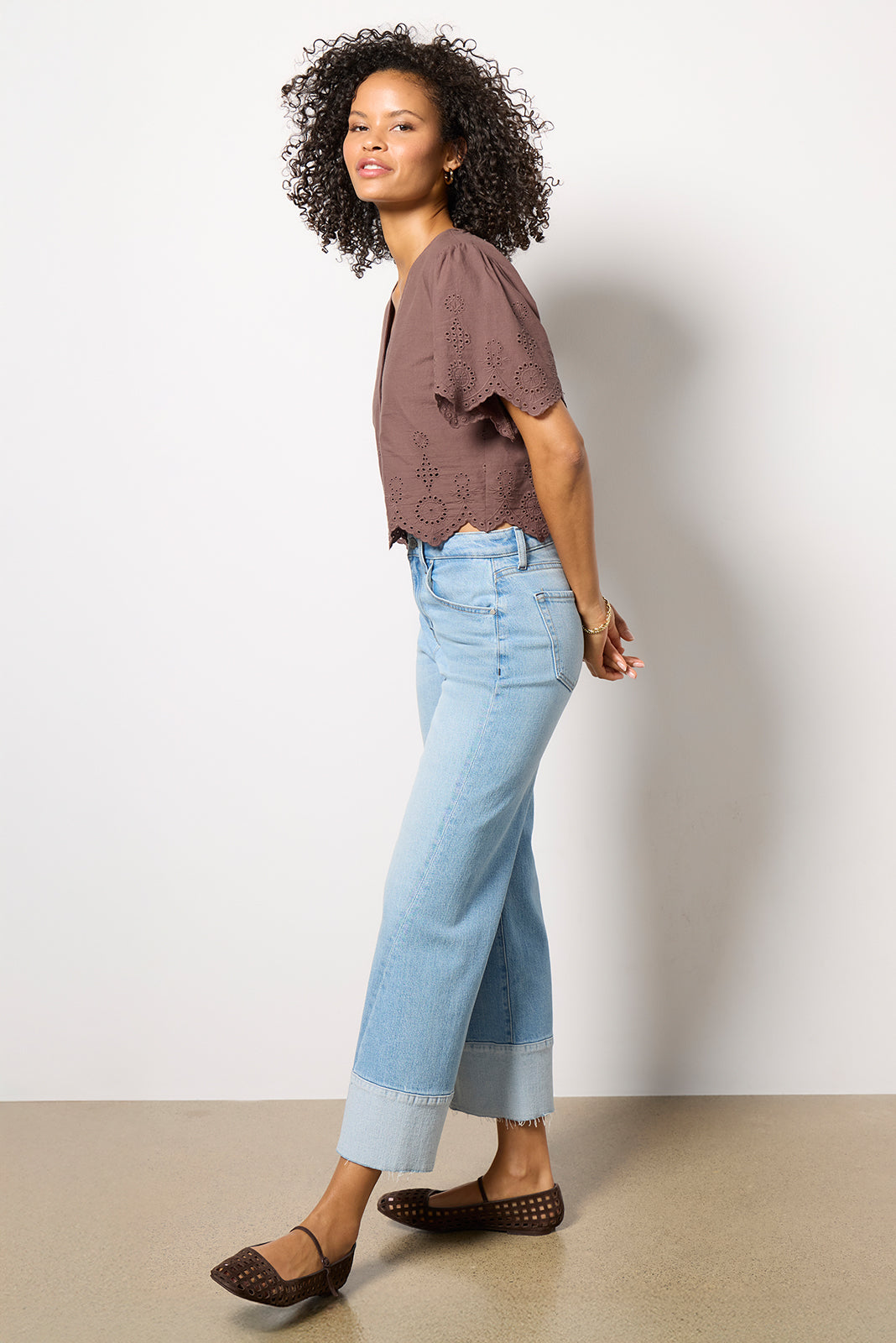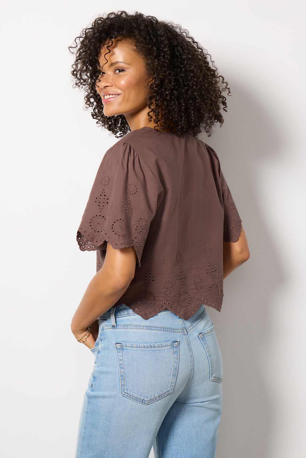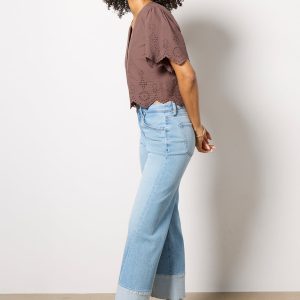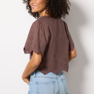 Embroidered eyelets add a summery charm to this chic button-front top by Z Supply, featuring a cropped silhouette, short sleeves, and cotton fabric.