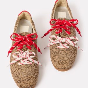 Add a pop of print to your sneaker collection with the Laini by Dolce Vita, featuring a leather upper, recycled synthetic sole, a red leather heel tab, and two lace options.